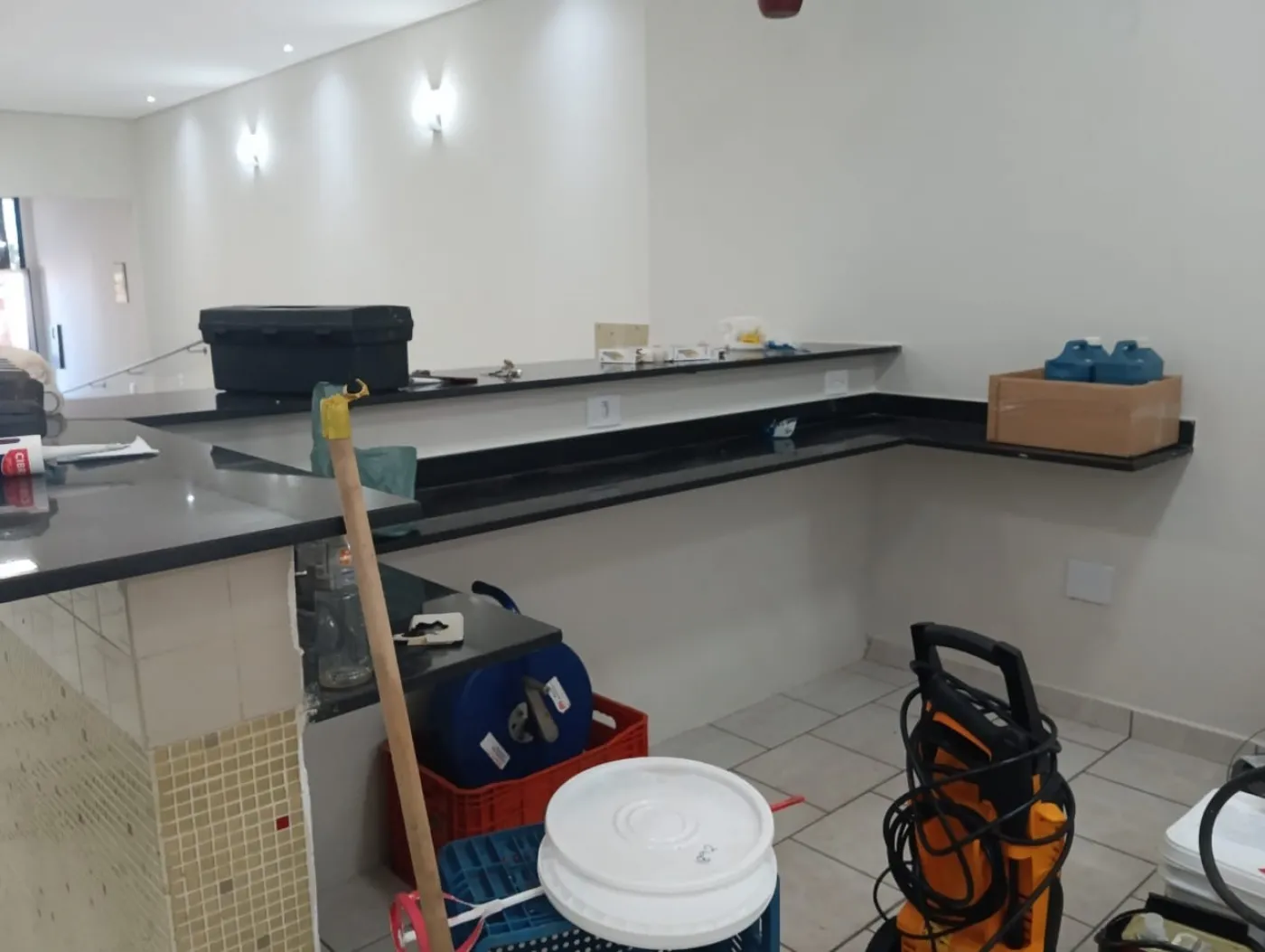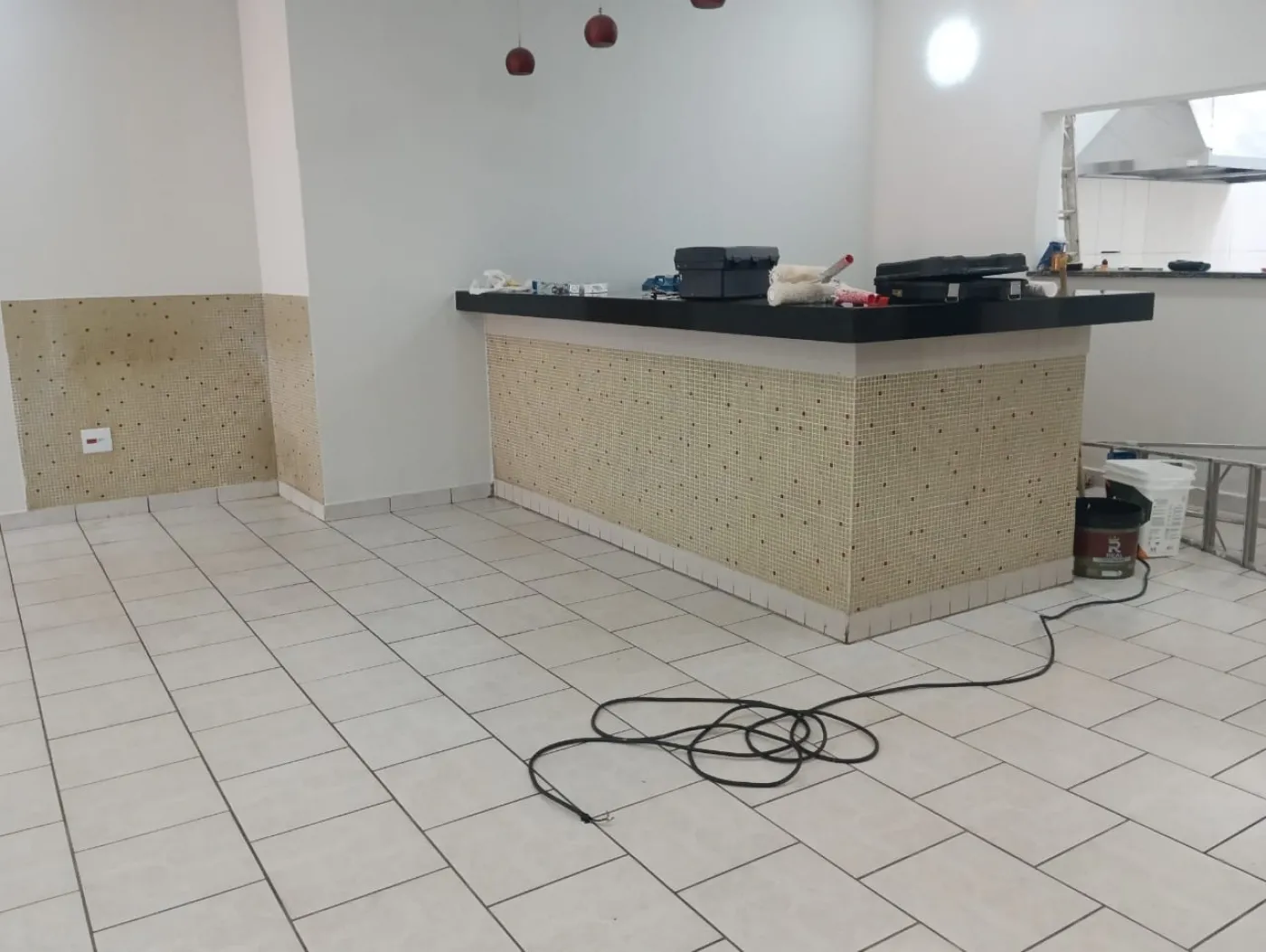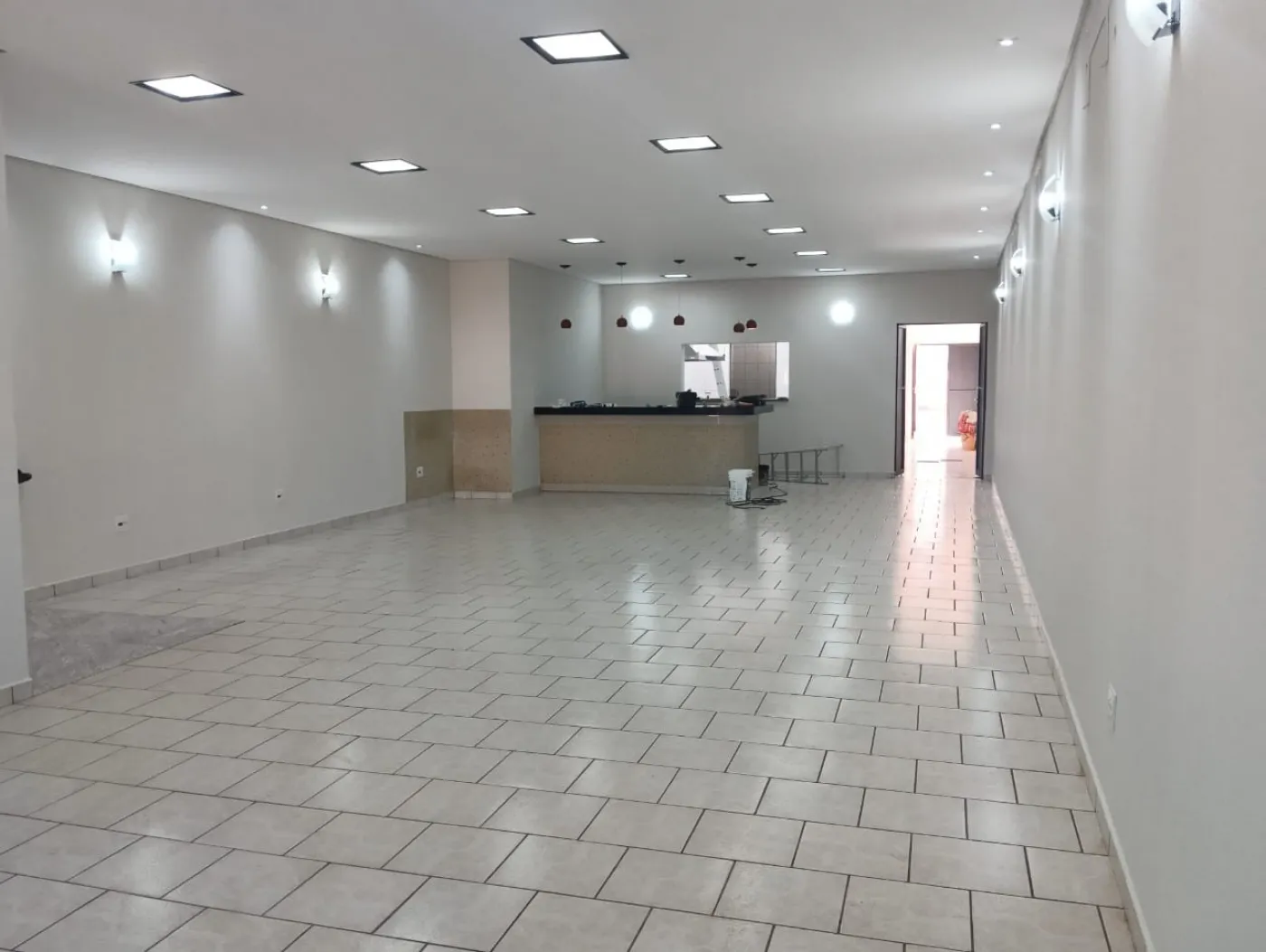 Salão com 103,20 metros quadrados com 3 banheiros.