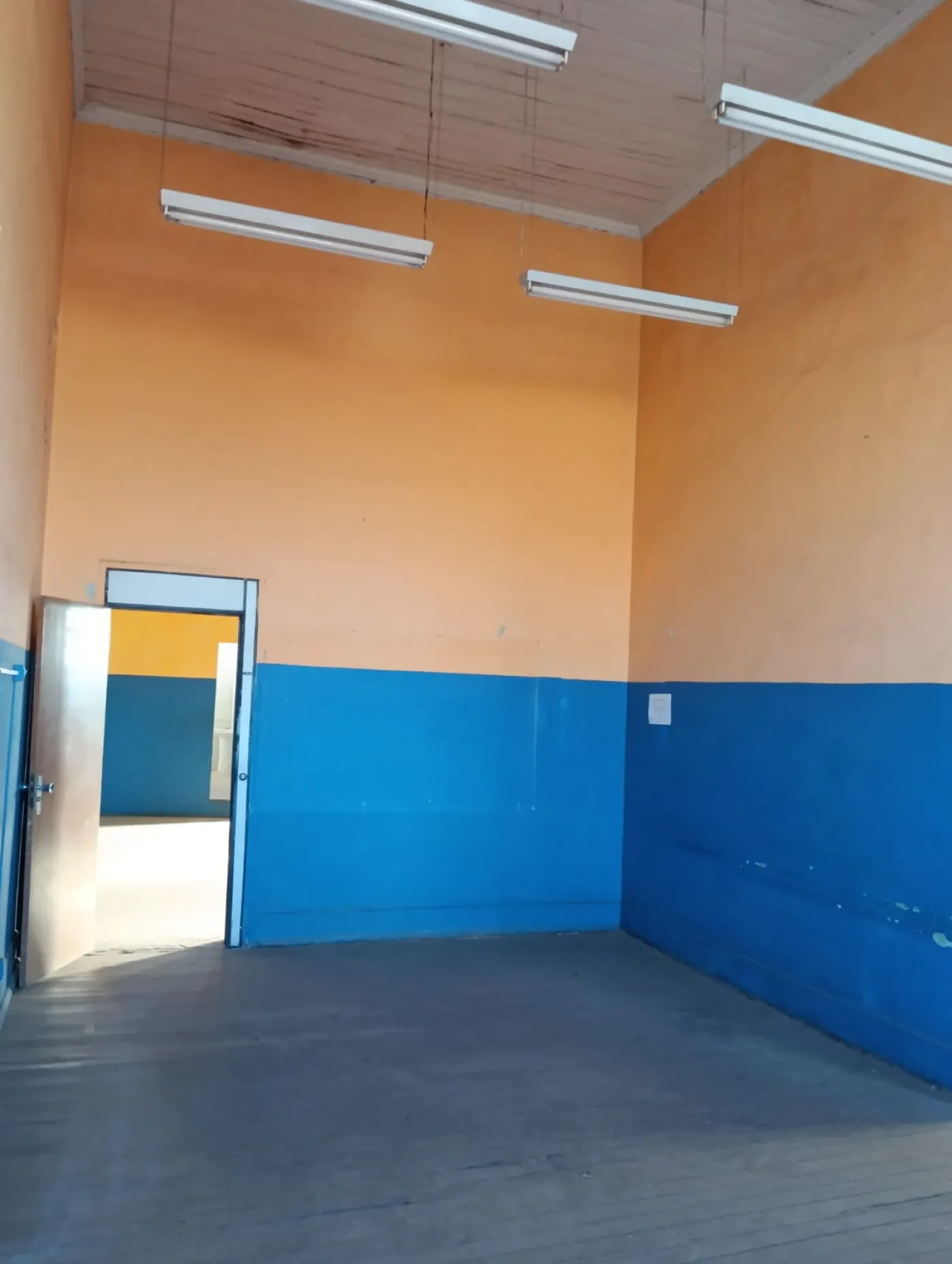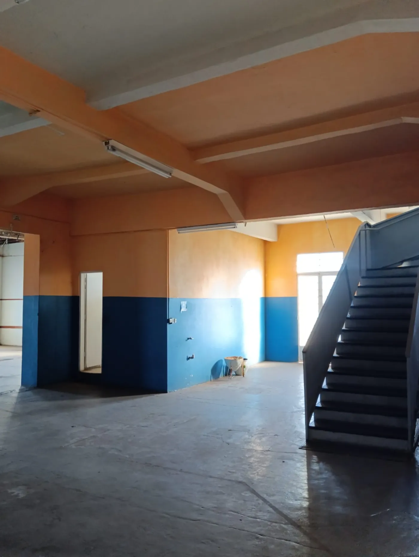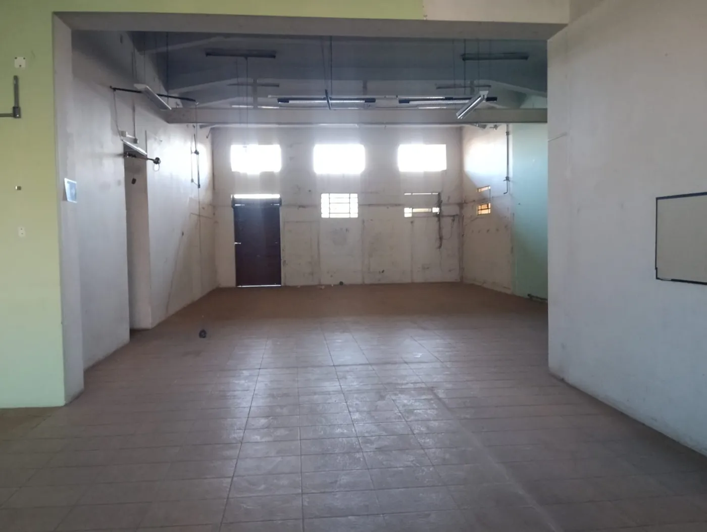 Com varias salas , banheiros e um grande estacionamento.