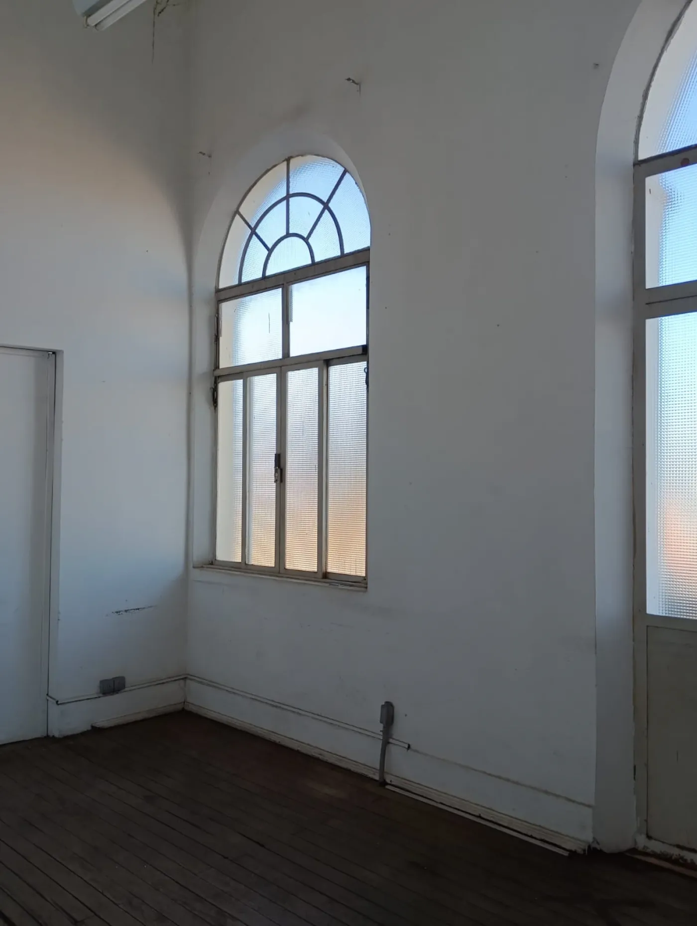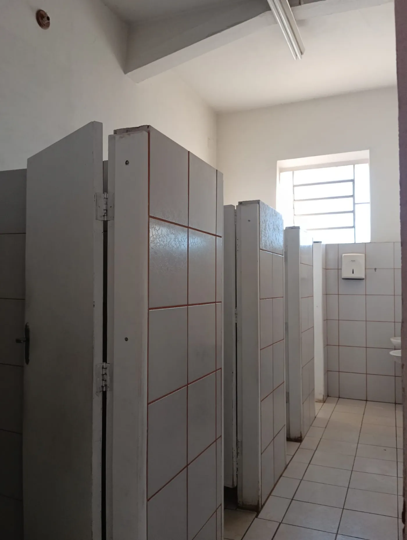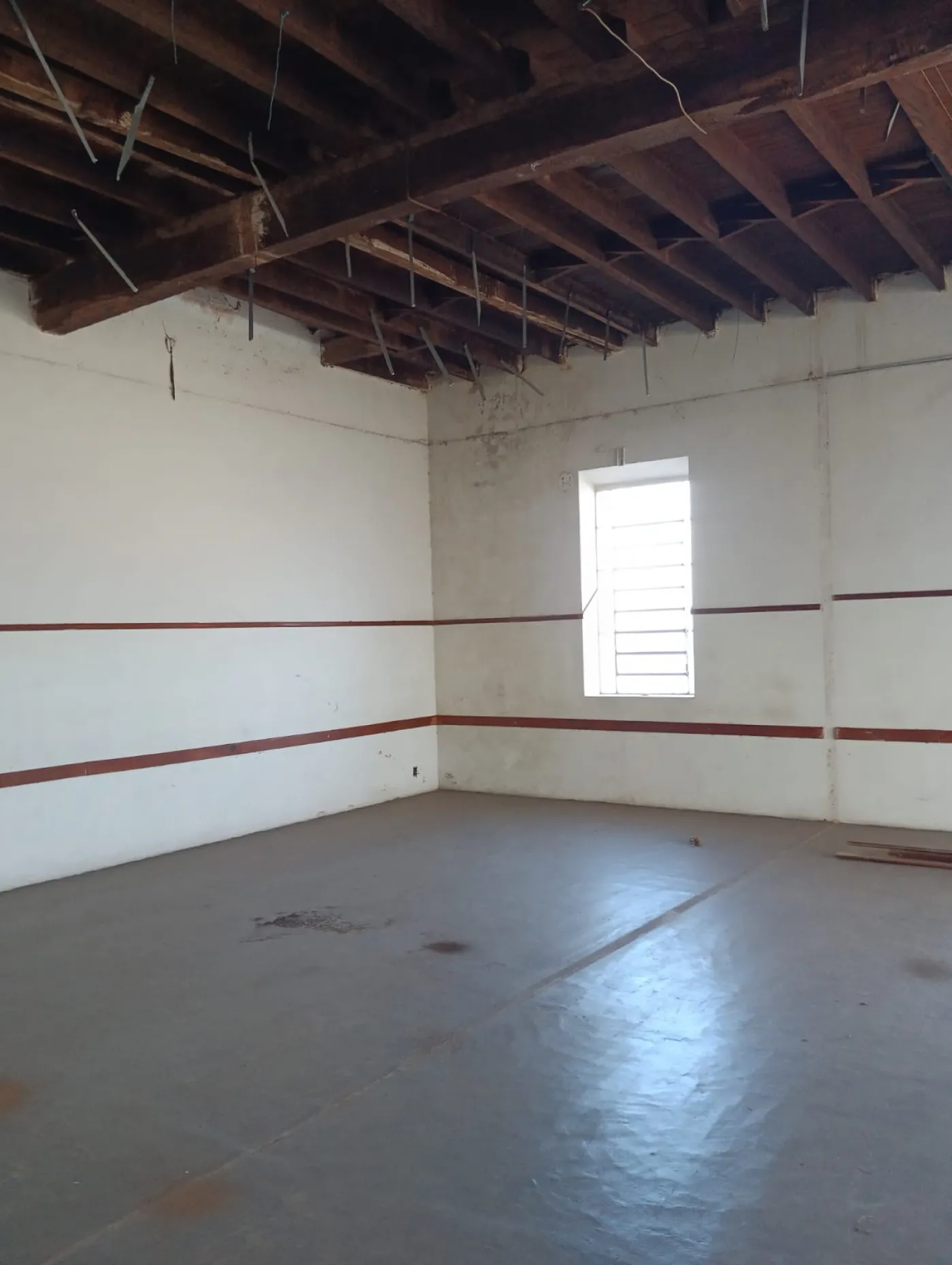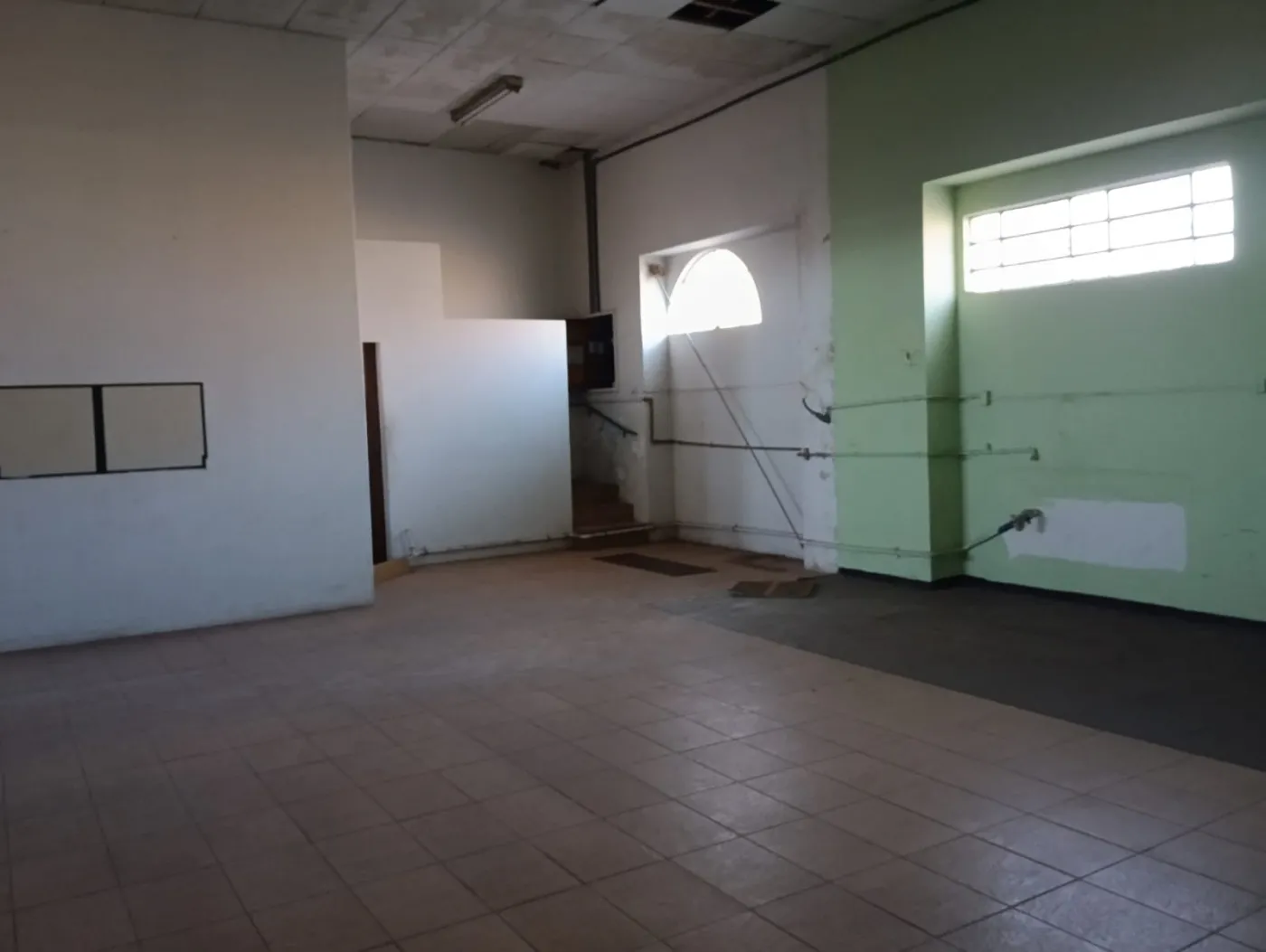 Com varias salas , banheiros e um grande estacionamento.