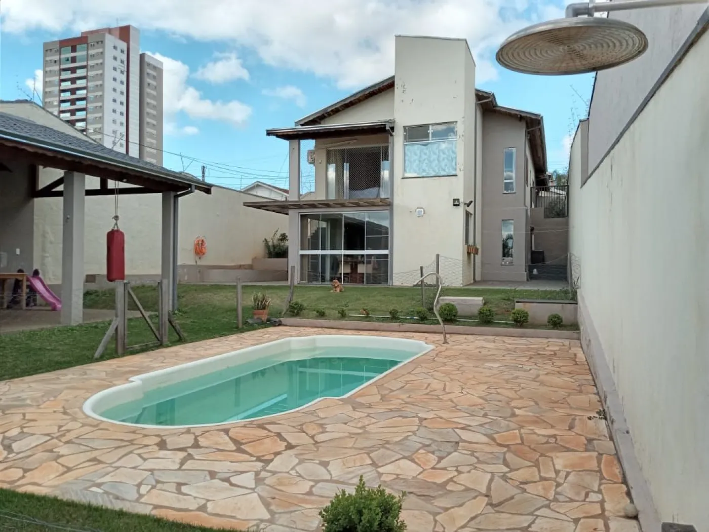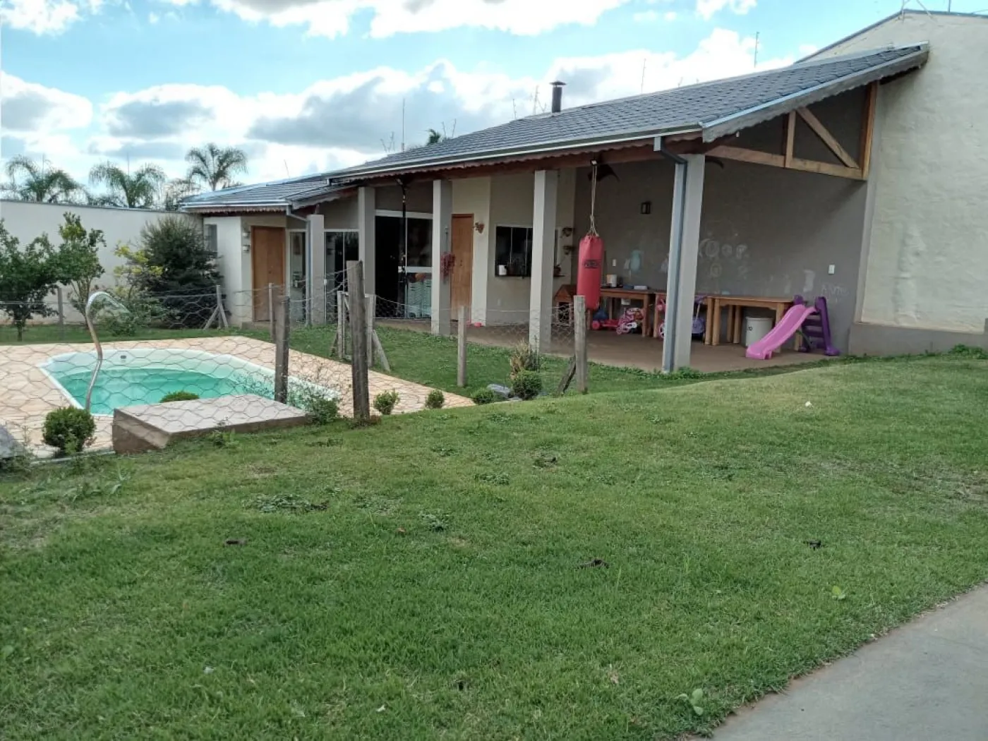 3 dormitórios (1Suíte) sala tv, sala jantar, cozinha , banheiro social , edícula com área de lazer com churrasqueira e piscina.